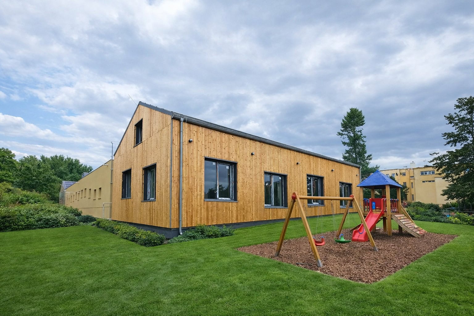 Na objektu nové mateřské školy s dětskými skupinami v Přerově nad Labem jsme realizovali provětrávanou fasádu o celkové ploše přibližně 300 m².