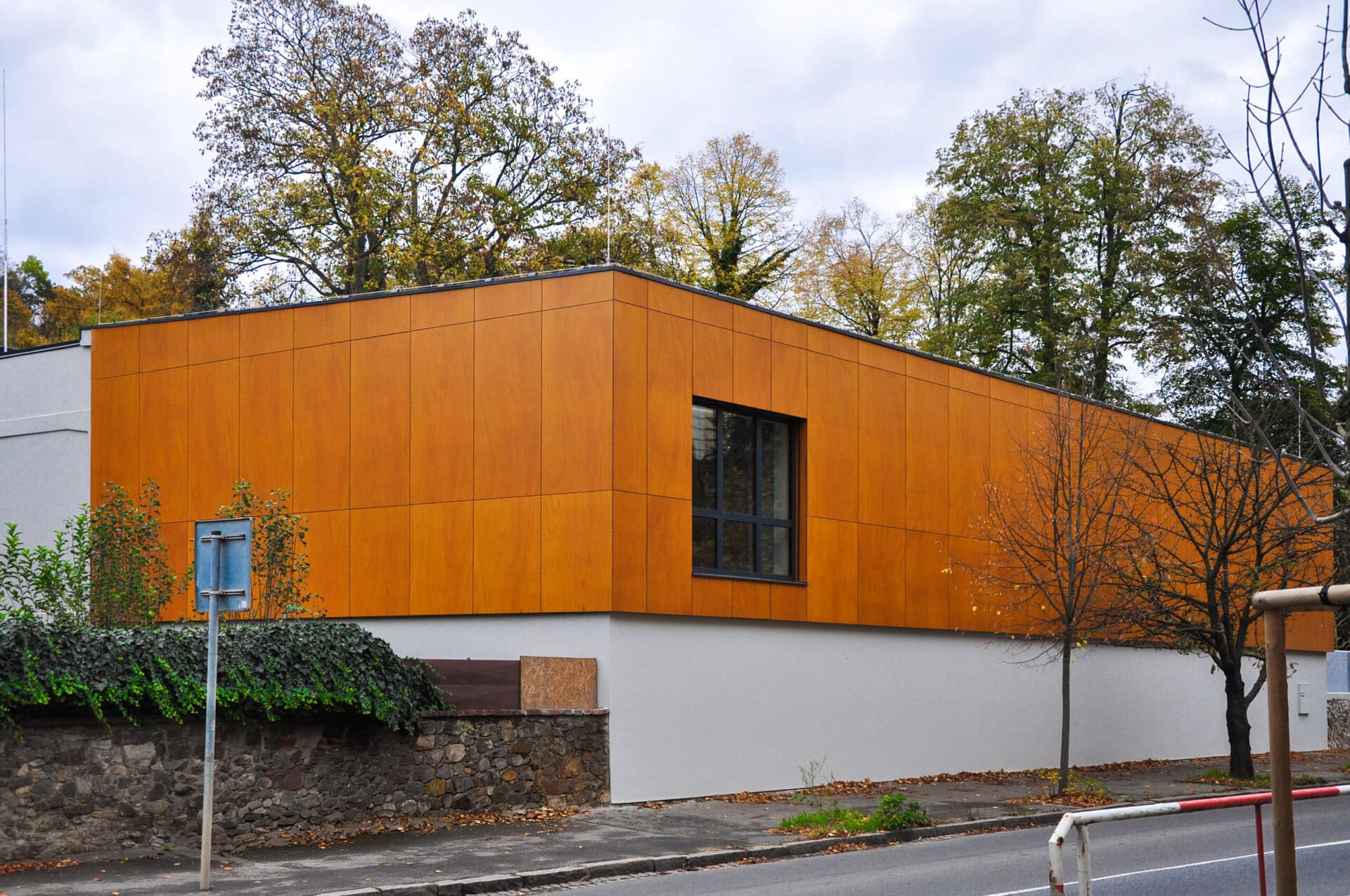 Materiál Parklex Prodema přináší přirozený vzhled dřeva a zároveň splňuje náročné požadavky na exteriérové použití. Výsledná fasáda tak spojuje estetiku přírodního materiálu s moderní fasádní technologií a odpovídá současným nárokům na funkčnost i design veřejných budov.